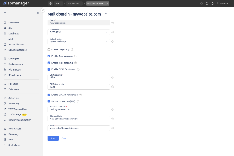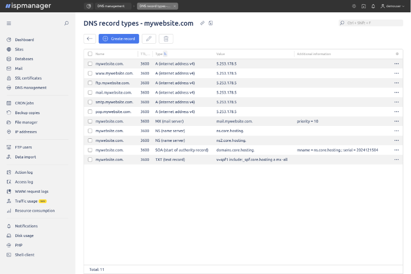ISPManager-hallintapaneeli – helppo hallinta WordPressille, verkkokaupoille, useille verkkosivustoille ja sähköpostille.