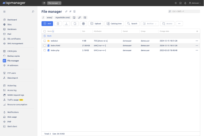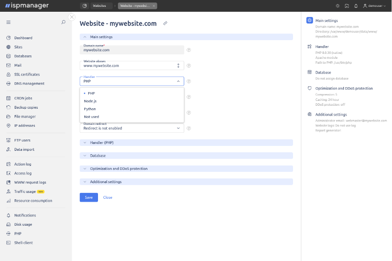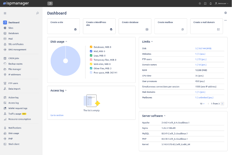 ISPManager-hallintapaneeli – helppo hallinta WordPressille, verkkokaupoille, useille verkkosivustoille ja sähköpostille.